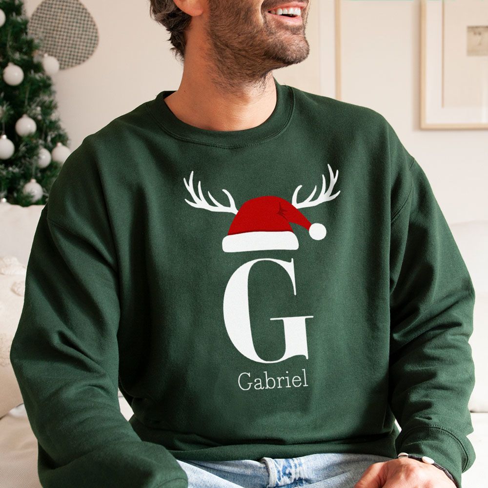 Rendez les fêtes encore plus festives avec votre propre pull de Noël personnalisé ! La grande initiale personnalisée (avec un adorable bonnet de Noël !) et votre prénom font de ce pull une pièce unique et originale.
