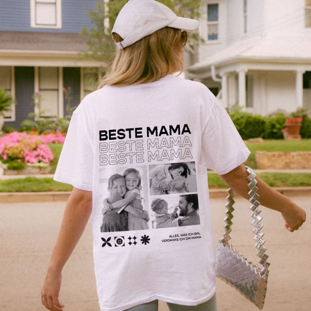 T-shirt personnalisé avec photos en noir et blanc et texte - Design